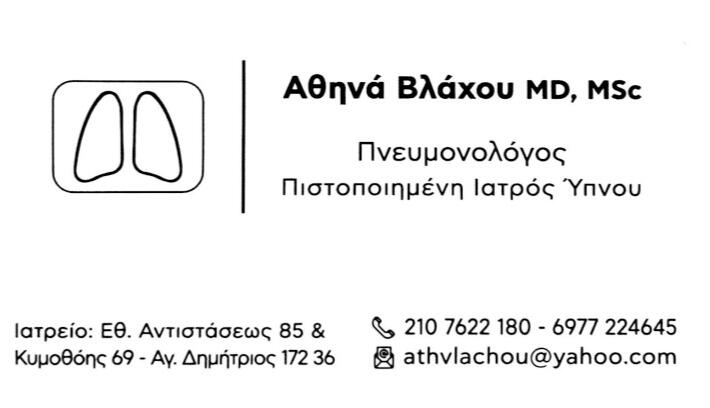 ΑΘΗΝΑ ΒΛΑΧΟΥ MD-MSc | ΠΝΕΥΜΟΝΟΛΟΓΟΣ-ΥΠΝΟΛΟΓΟΣ